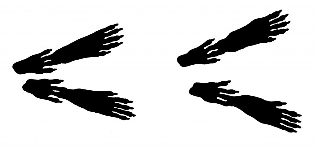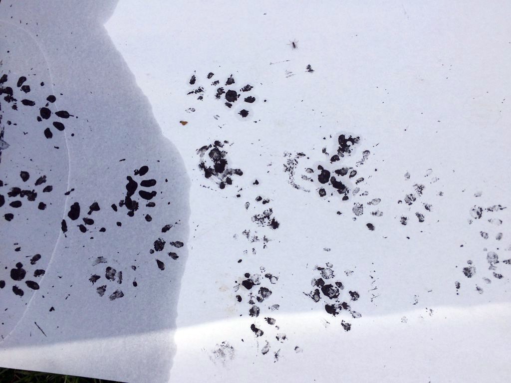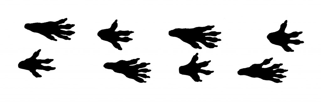 Solche hand- und fußähnlichen Tappser hinterlässt ein Igel. An den Vorder- und Hinterfüßen besitzt er jeweils fünf Zehen. © C. Geidel/LBV